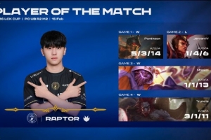 体育资讯2月15日讯 BFX打野选手Raptor四局合砍10/9/44的战绩,拿下BFX对阵T1系列赛MVP。