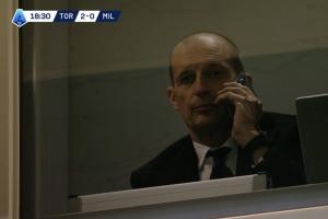 体育资讯12月09日讯 意甲第14轮米兰客战都灵,米兰在第17分钟0-2落后。随后导播镜头捕捉到,因红牌停赛的阿莱格里在看台打了一通电话,随后米兰成功连扳3球!