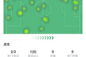 评分7.8,出场95分钟,进球1个,射门2次、射正2次、尝试过人1次