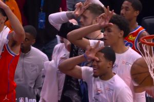 GIF-雷霆爆炸!!杰伦威压哨三分轰进!