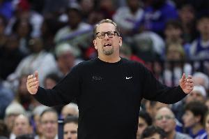 第四节最后时刻出现争议,马克西上篮被杜兰特干扰球,裁判没有吹罚。赛后,76人主教练纳斯接受采访,谈到这个干扰球漏吹。