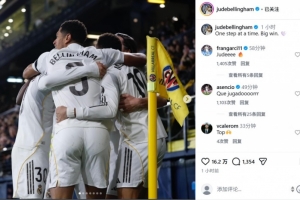 下一篇: 先赛积分升至榜首,贝林厄姆社媒晒庆祝照:一步一个脚印!