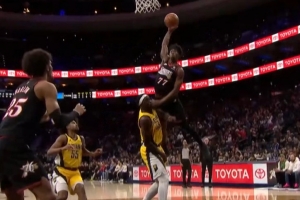 GIF-埃奇库姆试图隔扣西亚卡姆被犯规
