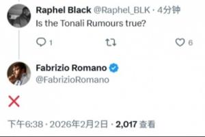 体育资讯02月02日讯 针对冬窗截止日阿森纳有意签托纳利的传闻,名记罗马诺予以辟谣。